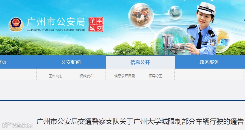 广州市公安局交通警察支队关于广州大学城限制部分车辆行驶的通告