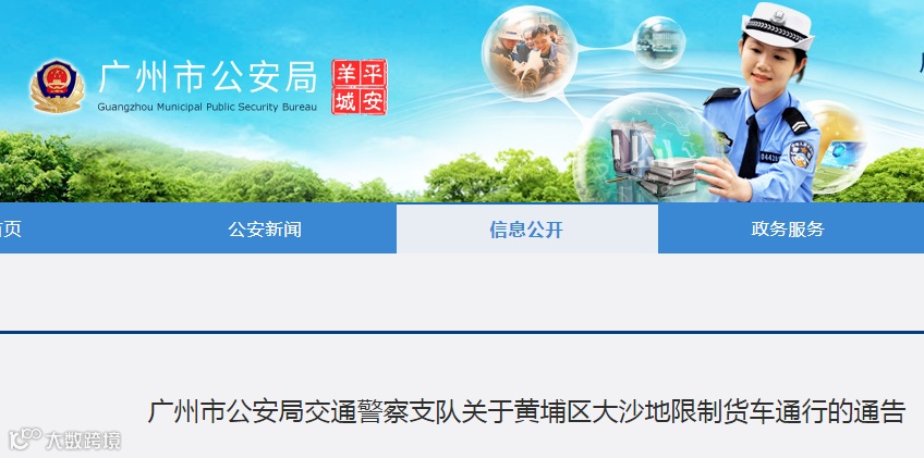 广州市公安局交通警察支队关于黄埔区大沙地限制货车通行的通告
