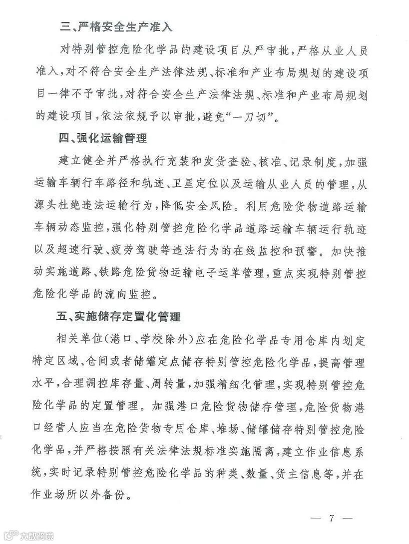 三、严格安全生产准入对特别管控危险化学品的建设项目从严审批,严格从业人员准入,对不符合安全生产法律法规、标准和产业布局规划的建设项目一律不予审批,对符合安全生产法律法规、标准和产业布局规划的建设项目,依法依规予以审批,避免“一刀切”。