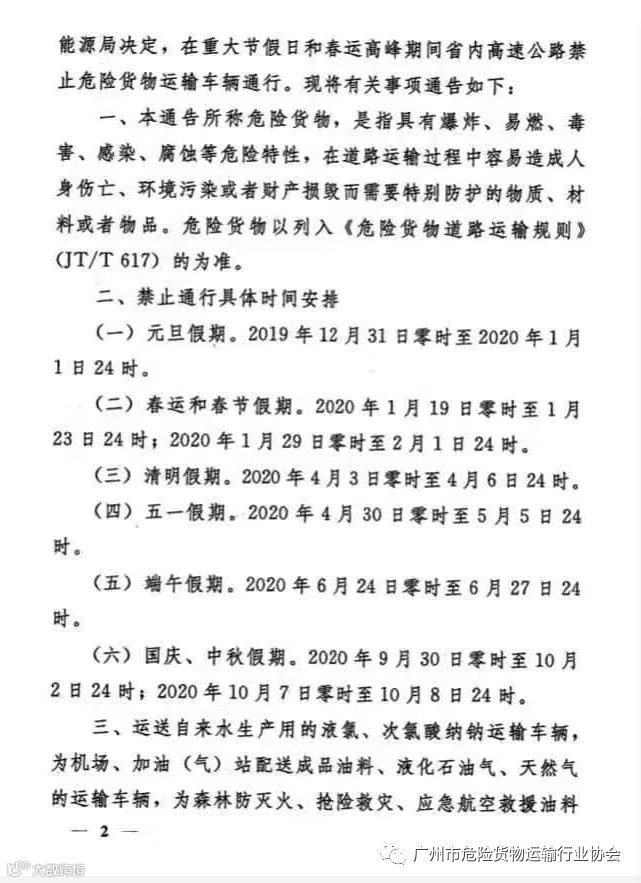 导读:关于2020年重大节假日和春运高峰期间高速公路禁止危险货物运输车辆通行的通告