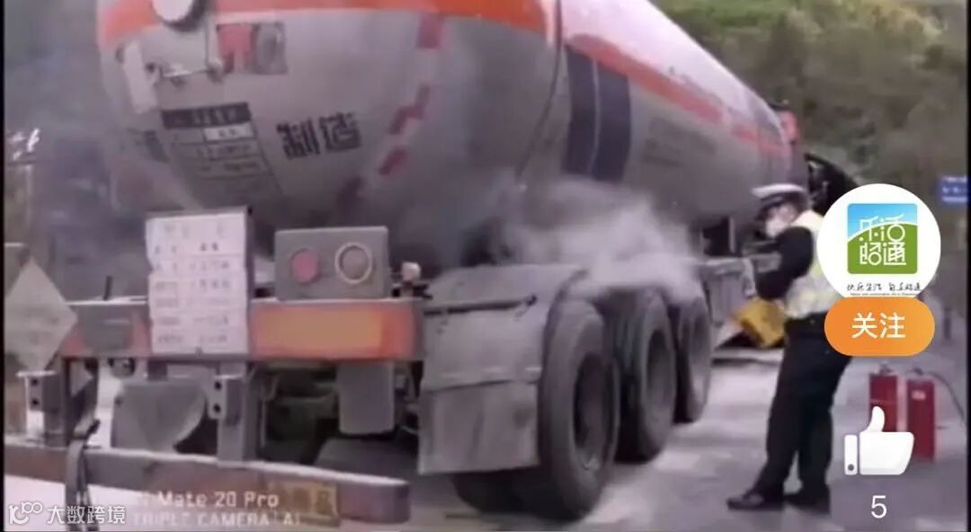3月3日,云南昭通G85银昆高速公路昭通段K1605+200M(箭竹塘隧道)入口处,一辆运输危险化学品的车辆轮胎发生自燃。现场浓烟滚滚,车辆随时可能发生爆炸,情况十分危急。交警赶往现场做好安全示警,对路段进行暂时封堵,并迅速找来灭火器对轮胎起火位置进行扑灭。民警又用桶提来水对轮胎进行喷水冷却。最终成功化解险情,现场无人员伤亡。目前,事故原因正在进一步调查中。