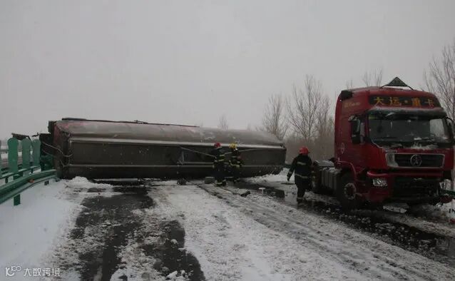 3月3日,内蒙古通辽市出现强降雪天气,给出行带来一定的影响,当日下午,科左后旗甘旗卡镇去往伊胡塔镇的304国道上发生一起车祸,一辆满载34吨柴油的罐车刹车时发生侧翻,罐体泄漏,在当地消防员的救援下,成功将油罐车导罐。