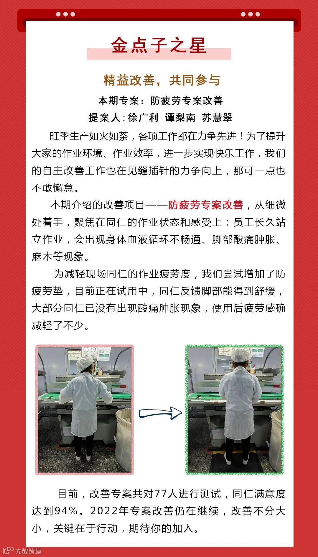 【广盛天地】小改善微创新,防疲劳垫,自主改善战一线!