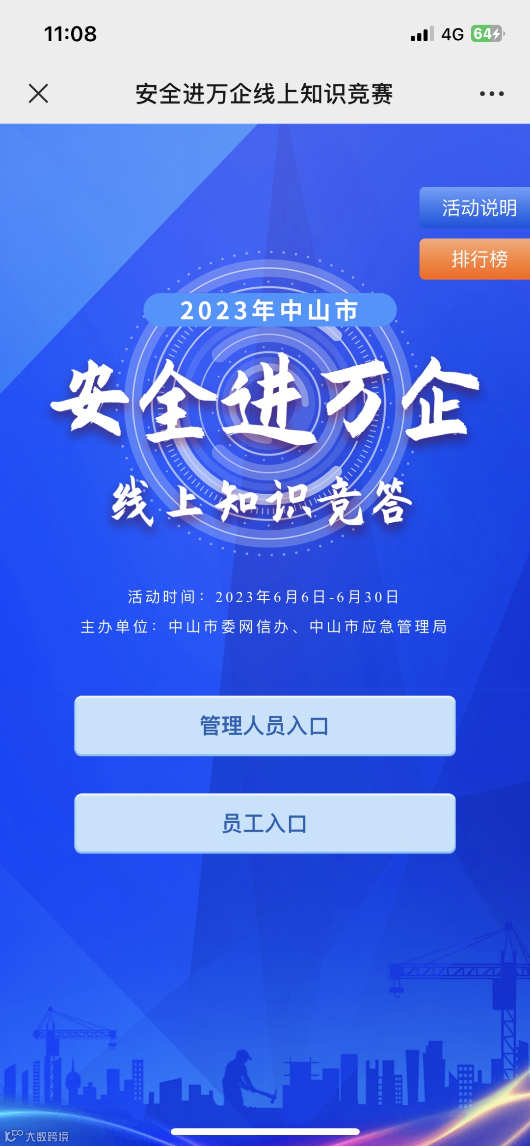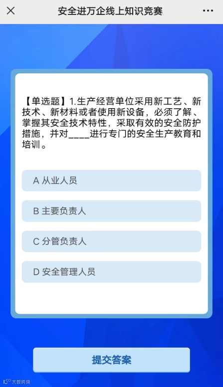 3、进入答题页面参与答题。选择具体分类入口,管理人员点击管理人员入口,员工点击员工入口。