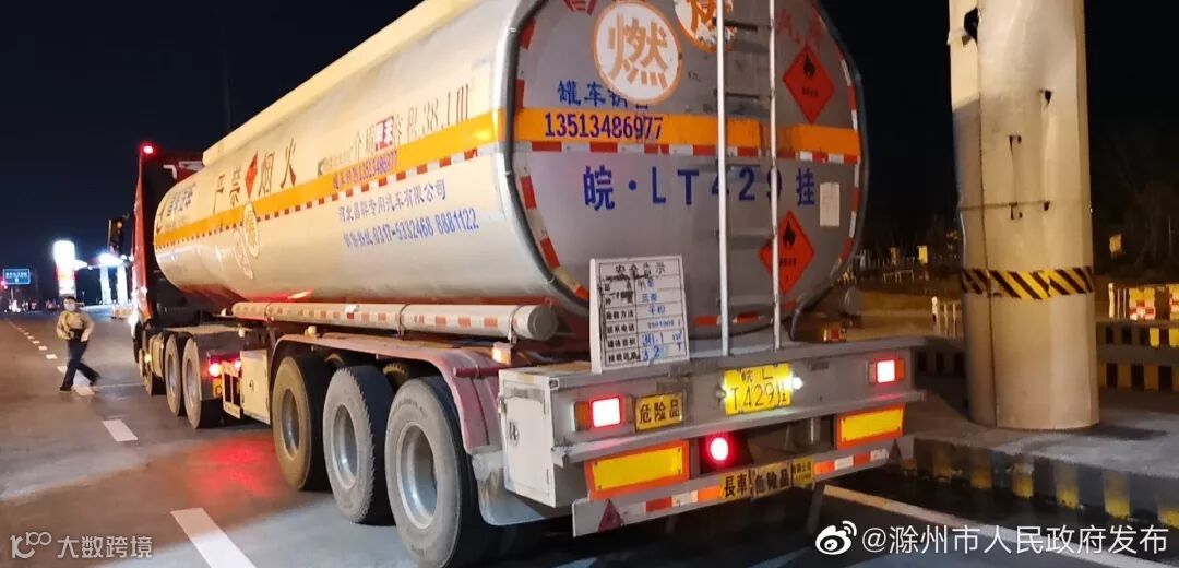 2月9日晚上8点多,在滁宁快通检测站,一辆皖L牌照的油罐车无视道口的停车检查指示牌和现场4、5名交警和路政人员的停车示意,逃避检查并闯卡,一直往前开了几百米,才被交警拦下,给予遣返。