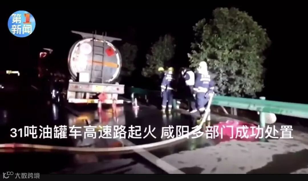 2月18日21时许,驾驶员孟某驾驶豫J牌照半挂牵引车装载31吨汽油沿连霍高速由西向东行驶至K1110+200m处时,发觉车辆行驶异常,将车停在应急车道查看后,发现右后轮三轴轮胎有火苗和浓烟,连忙报警求助。接警后,咸阳高交大队民警立即赶往现场,并通知兴平消防、高速路政等部门一同赶赴现场。民警到场发现油罐车右后三轴轮胎已经起火燃烧,为确保现场人员、车辆安全,防止二次事故发生,民警迅速设置警戒区,进行临时交通管制。同时两辆消防车从兴平收费站逆行到达现场,迅速展开灭火行动。