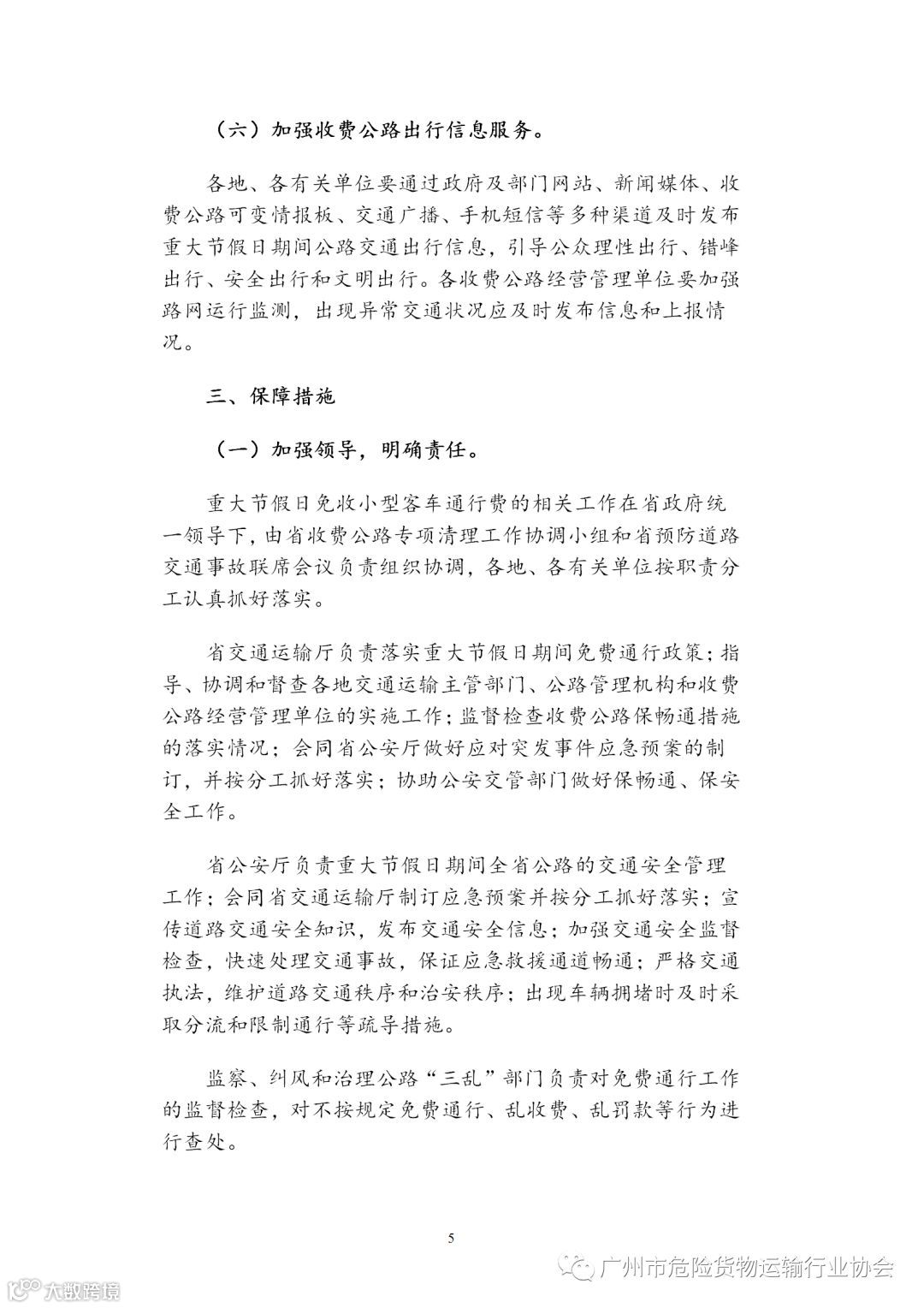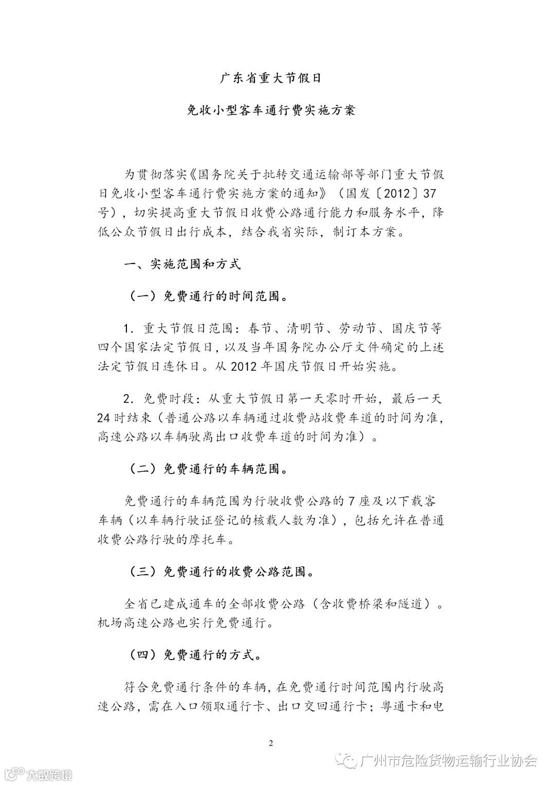 关于印发广东省重大节假日免收小型客车通行费实施方案的通知