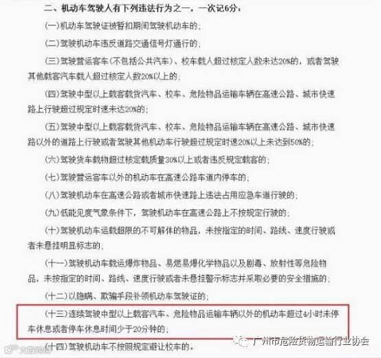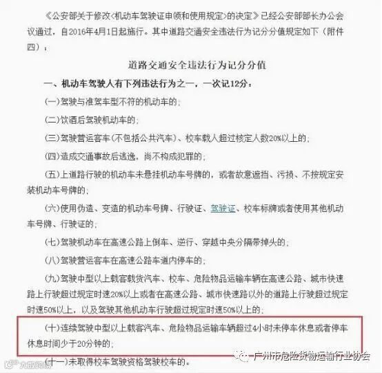 这么严?看看法律怎么规定的!《机动车驾驶证申领和使用规定》:连续驾驶中型以上载客汽车、危险物品运输车辆超过4小时未停车休息或者停车休息时间少于20分钟的,一次扣12分;连续驾驶中型以上载客汽车、危险物品运输车辆以外的其他机动车超过4小时未停车休息或者停车休息时间少于20分钟的,一次扣6分。