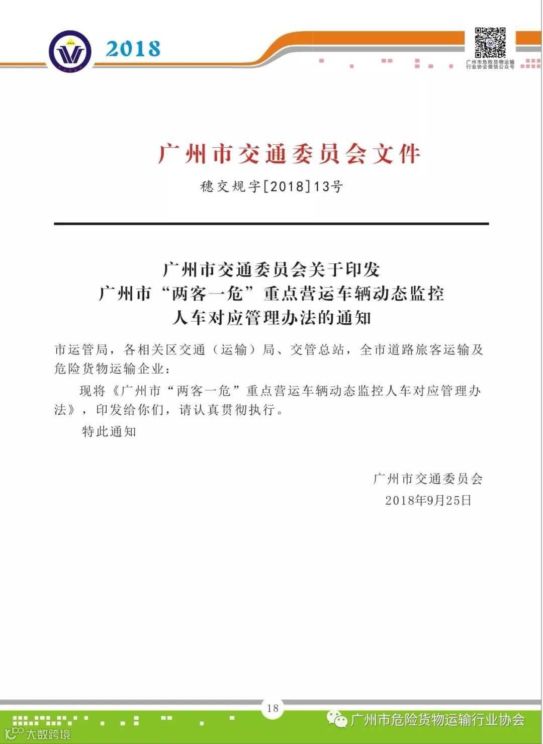广州市危险货物运输行业协会会刊(2018年第二期)