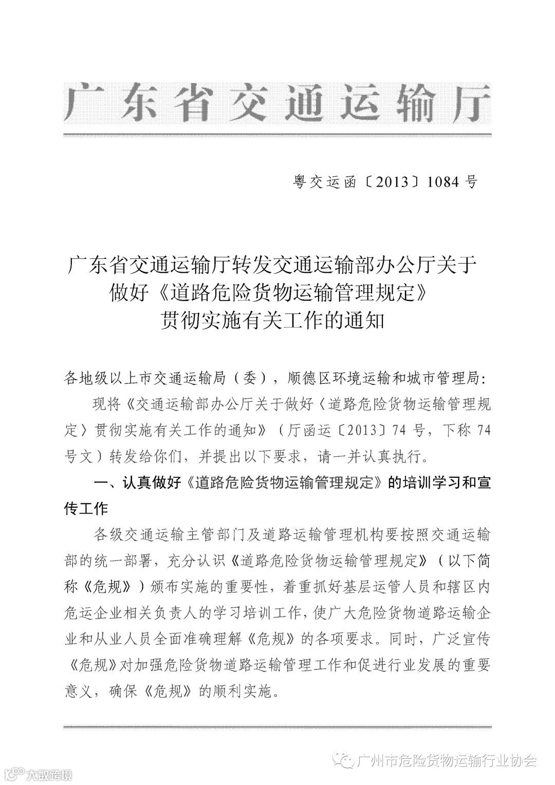 导读:关于做好《道路危险货物运输管理规定》贯彻实施有关工作的通知