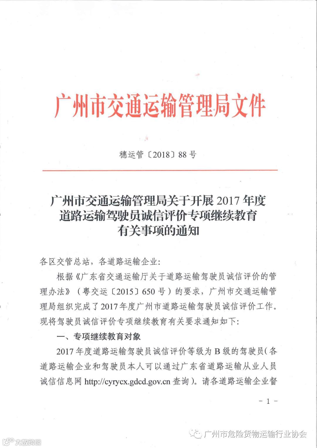 导读:关于开展2017年度道路运输驾驶员诚信评价专项继续教育有关事项的通知