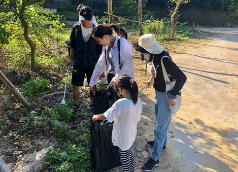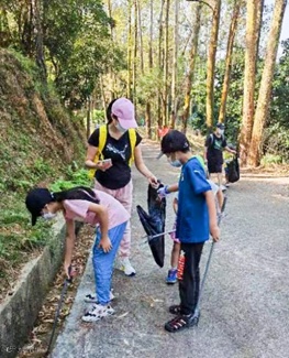 在Marc的组织带领下,COBRA-PUMA GOLF团队家长携带小朋友共计26名,带上手套,手拿塑料袋,在大尖山沿途道路两侧捡拾垃圾,重点清理了烟头、纸屑、饮料瓶、白色塑料制品等。