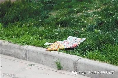 在路边歇脚的市民离开后,留下了废纸