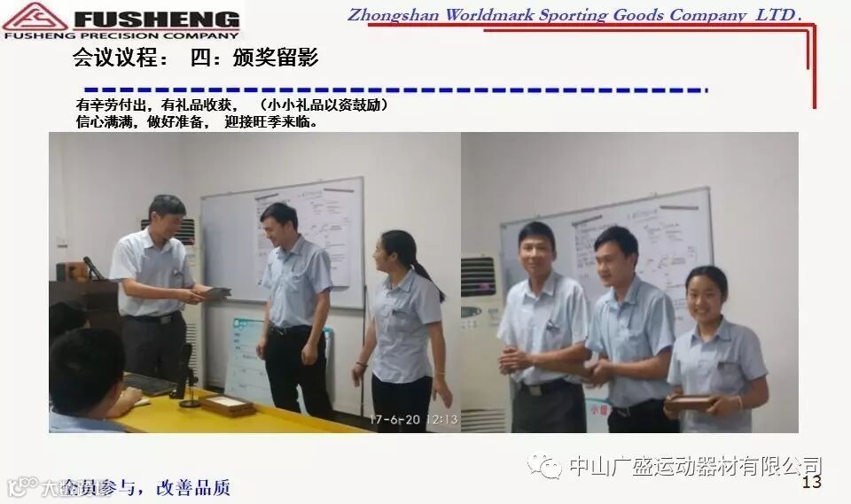 针对自主研活动表现优秀的主管,公司于2017年4月安排到中山质协会学习“QCC活动在制造现场品质改善中的应用”;其中品保E部的王贵冬课长在学习有成并取得制造E部主管的认同和支持后果断导入此活动,目前正在如火如荼地进行中,相信一定能取得不错的效果。