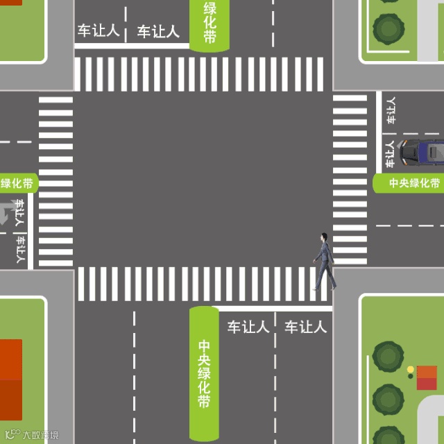 行人步入斑马线,车辆行经交叉路口转弯时,左转车辆必须让行。
