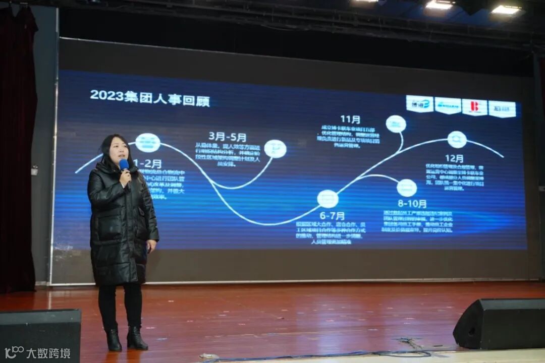 博海集团人事总监吴超丽就2023年集团各公司人事重大调整及集团人员增减情况进行了回顾分析,并强调了在企业文化建设方面,集团在2024年将重点从党建引领、员工沙龙、企业氛围营造、悟道躬行、员工技能提升、文化有声等多方面来进行文化落地及传播。随后,吴总监公布了2024年度人事政策,将员工手册、企业制度、薪酬体系及岗位流程纳入了各公司各部门每年度学习计划及考核计划,并公布了集团2024员工手册关于年假、婚假、陪产假相关补充福利政策。让全体员工感受到了集团对员工的重视及关怀。