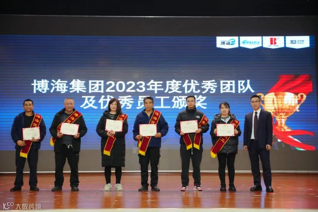 陈世良董事长对获得2023年度优秀团队(博卡联财务部)及优秀员工(孙普玉、张庆勇、左其荣、周世江、陈世英、李巍)颁发荣誉证书并进行了表彰,感谢他们对公司发展做出的积极贡献。