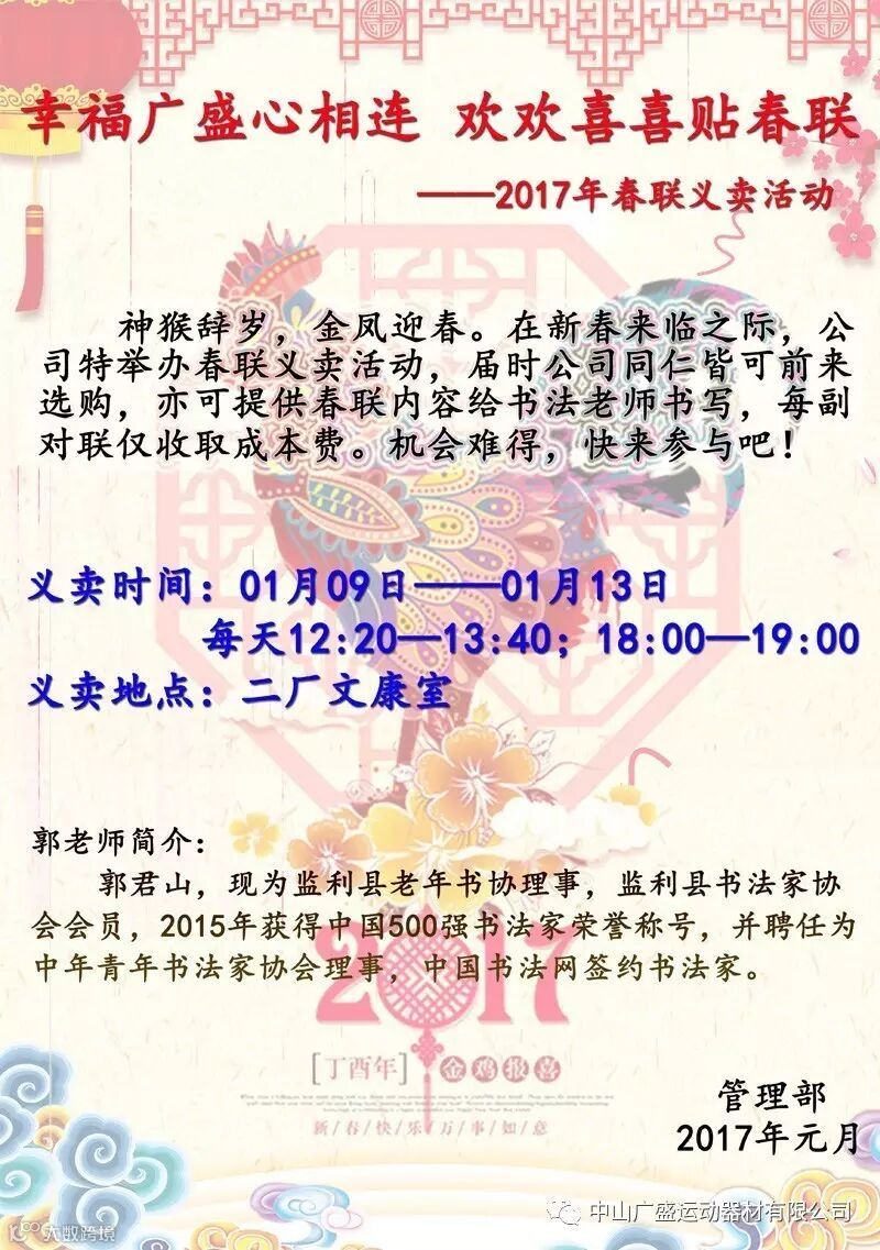 在新春来临之际,公司1月9日起至1月13日特举办春联义卖