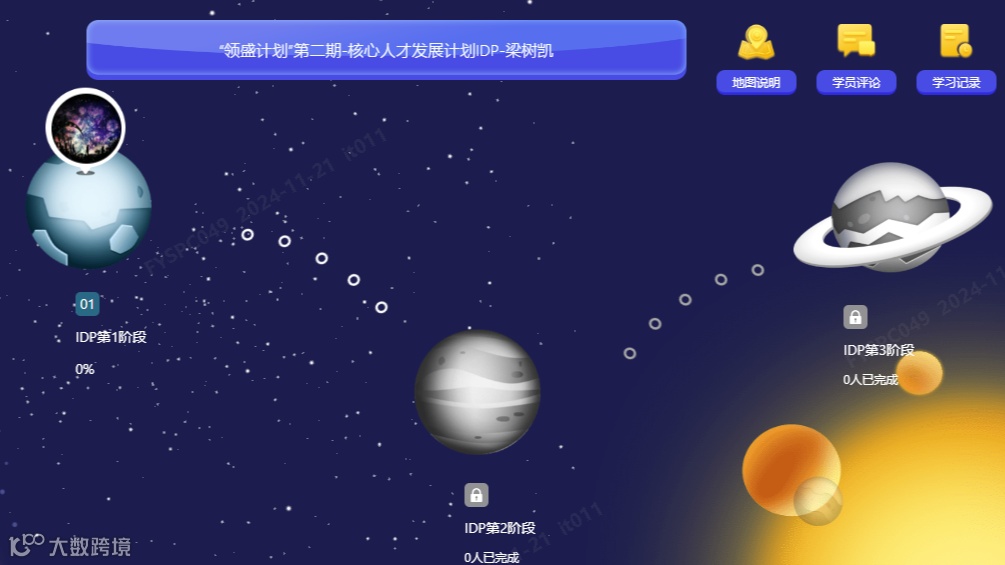 员工在我的任务学习项目中可查看定制个人发展路线,分为三个阶段,上一阶段学习完成后,方可解锁下一阶段。