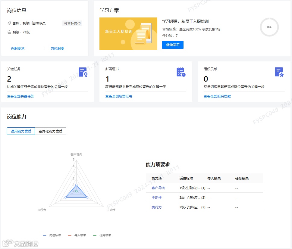 在人才发展中可查看当前岗位的任职资格标准,包括基本要求,实战经验,知识技能,能力素质等,帮助员工明确晋升门槛精准定位个人提升方向。