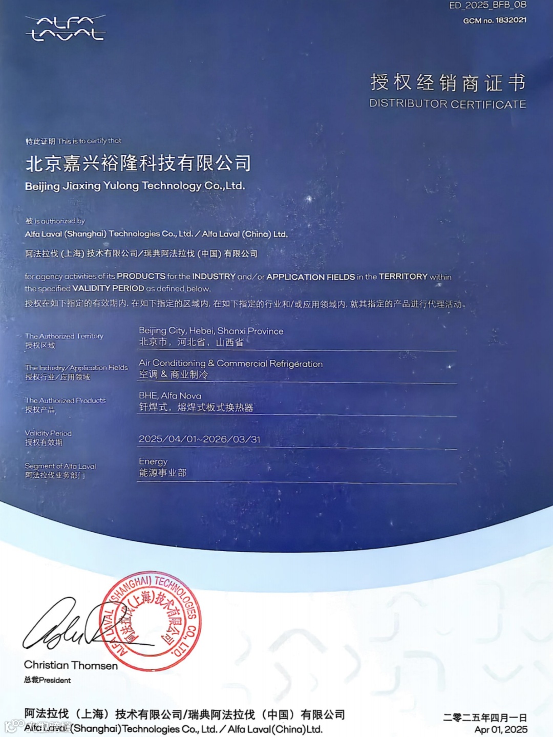 北京嘉兴裕隆科技有限公司和广州嘉欣裕隆贸易有限公司主要从事电子膨胀阀、空调膨胀阀、四通换向阀、日立空调压缩机、阿法拉伐换热器等核心制冷设备的代理、销售业务,是日本鹭宫、阿法拉伐、广州日立等多家西方制冷配套品牌产品的中国区代理商,已代理进口制冷配件20余年。我们坚信:以公司的良好信誉及高素质的服务团队为基础,以勤奋、务实的工作作风为出发点,努力进取,持续发展,与支持和信赖我们的朋友精诚合作,共同发展。