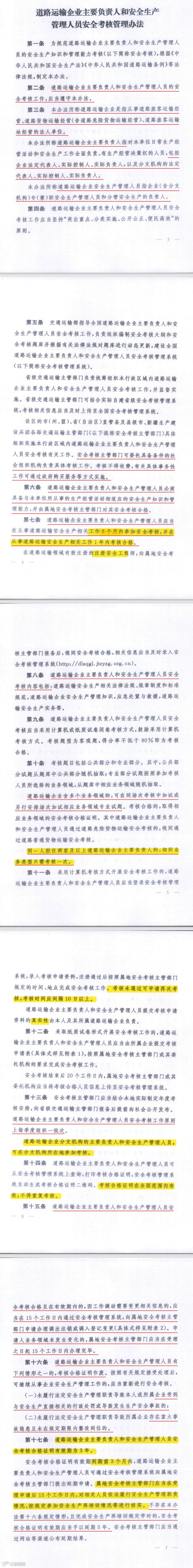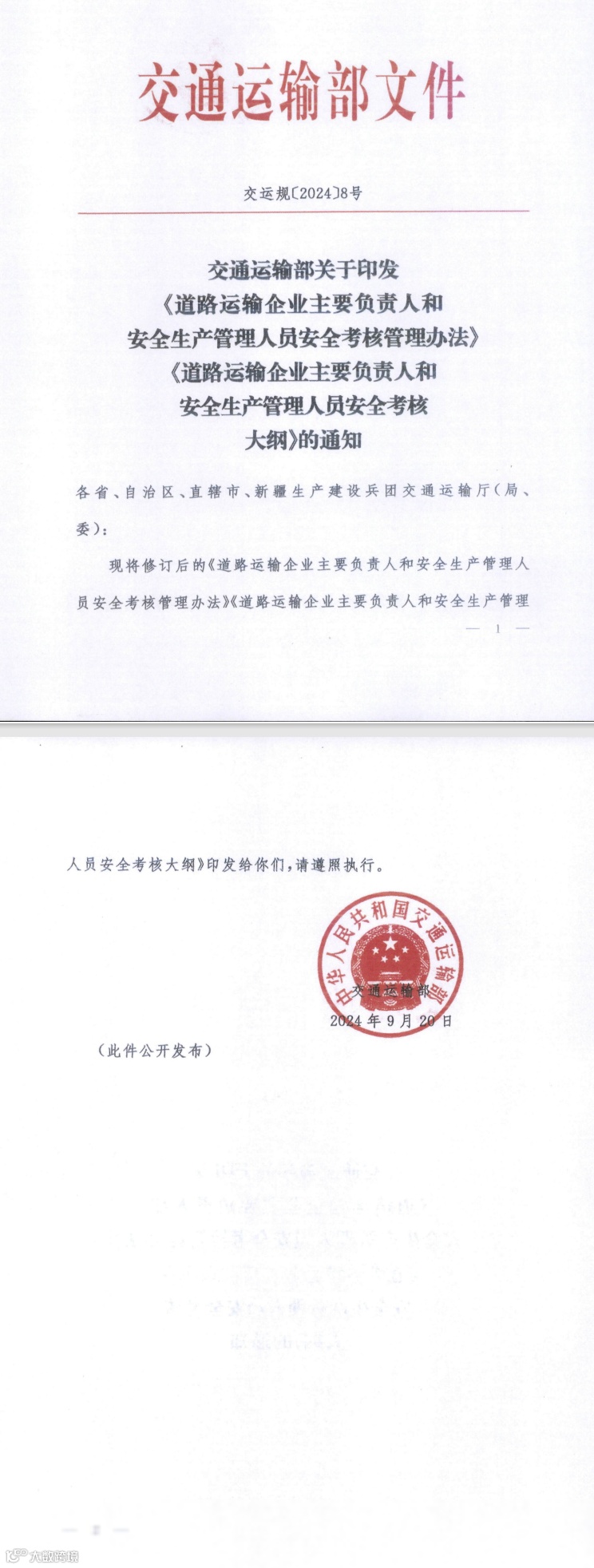 道路运输企业主要负责人和安全生产管理人员安全考核管理办法和大纲新版(2024版)10月1日起生效,旧版(2019版)作废