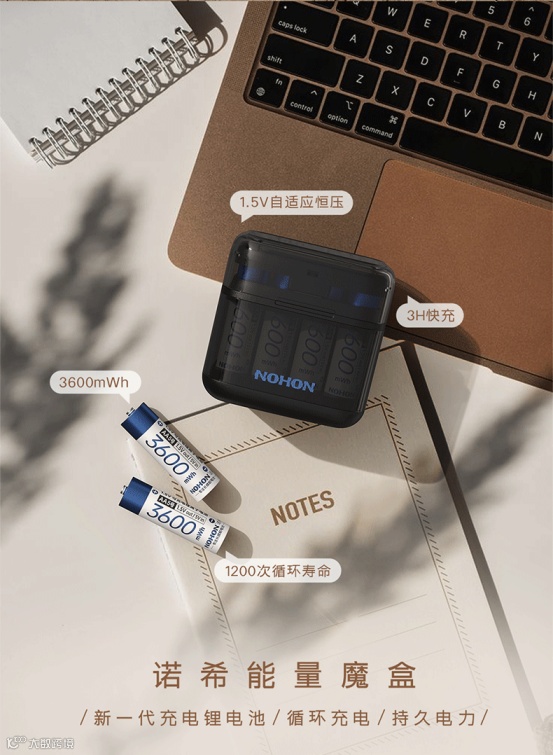 2.超高性价比:从综合使用成本来看,诺希电池优势明显。按普通电池 一元一颗计算,一颗诺希7号电池可省1600元,一盒(8颗)诺希7号电池可省 12800元。购买一盒诺希电池,瞬间化身用电省钱小能手。不仅为用户节省大量资金,还减少了废旧电池对环境的污染,一举两得,真正 做到经济环保两不误。此外,诺希5号7号电池还配备集充电与收纳为一体的能量魔盒,在为电池提供便捷充电 方式的同时,解决了电池收纳难题,让桌面更加整洁有序,进一步提升用户使用体验。诺5号7号电池凭