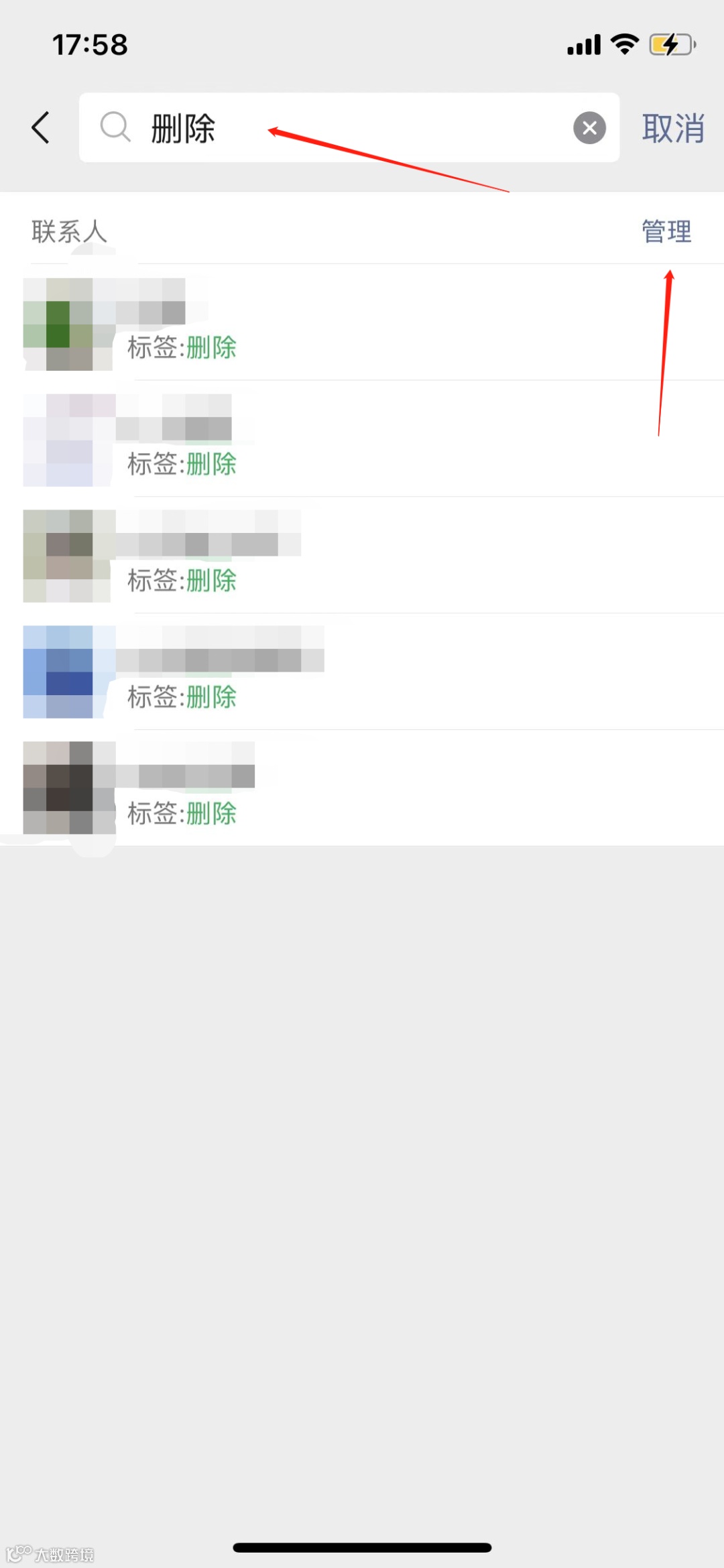 搜素里面输入标签名称,比如我是“删除”,然后人员就会跳出来,点击“更多联系人”,