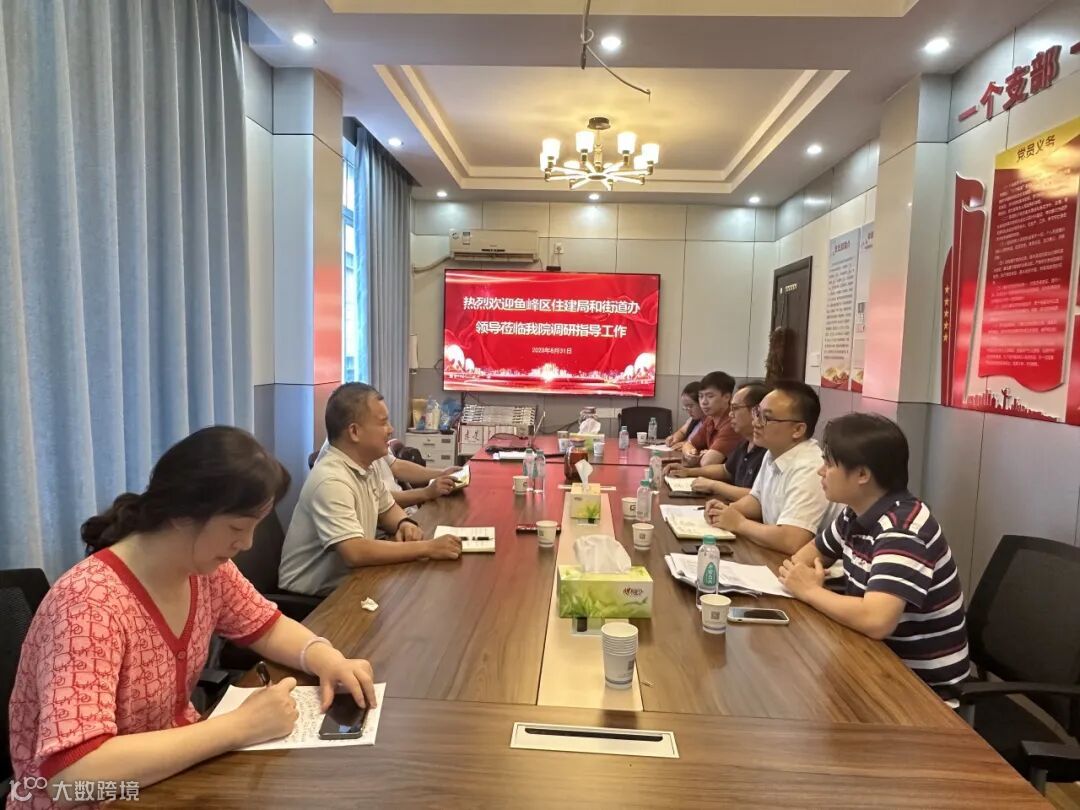 8月31日,柳州市鱼峰区住房和城乡建设局局长黄小磊率队,荣军街道办事处主任覃世东等一行5人到我院开展调研活动。院党支部书记、院长韦佳川及副院长庞庆强等4人参加。