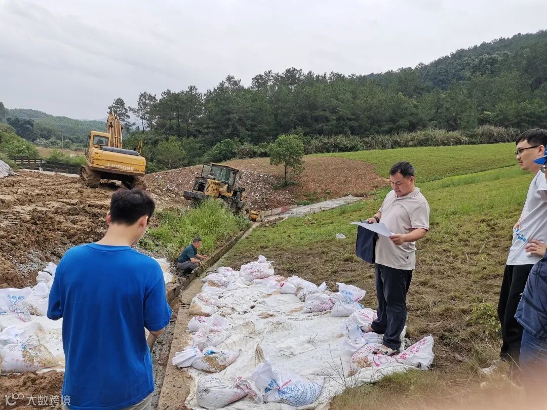 由于连降大雨,6月16日来宾市武宣县大荣水库主坝溢洪道溢洪,主坝坝脚出现多处集中冒水点,我院党支部副书记、总工程师廖宏骞同综合2室主任莫杨捷、地质高级工程师李明阳等一行冒雨前往大荣水库现场参与水库险情排查,为水库险情处理方案提供技术支持。