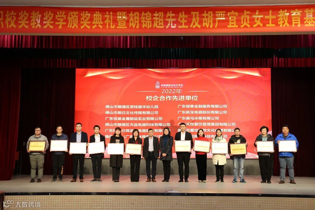 2022年12月31日下午,佛山市顺德区胡锦超职业技术学校奖教奖学颁奖典礼在学校礼堂隆重举行,广东银泰金融服务有限公司受邀出席本次活动。