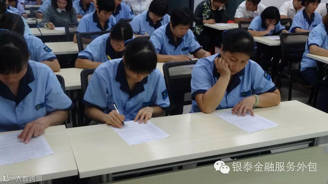 培训后对保洁员进行上岗证“考核”(笔试),大家认真答题,场内秩序井然,形成良好的学习气氛。