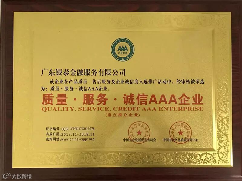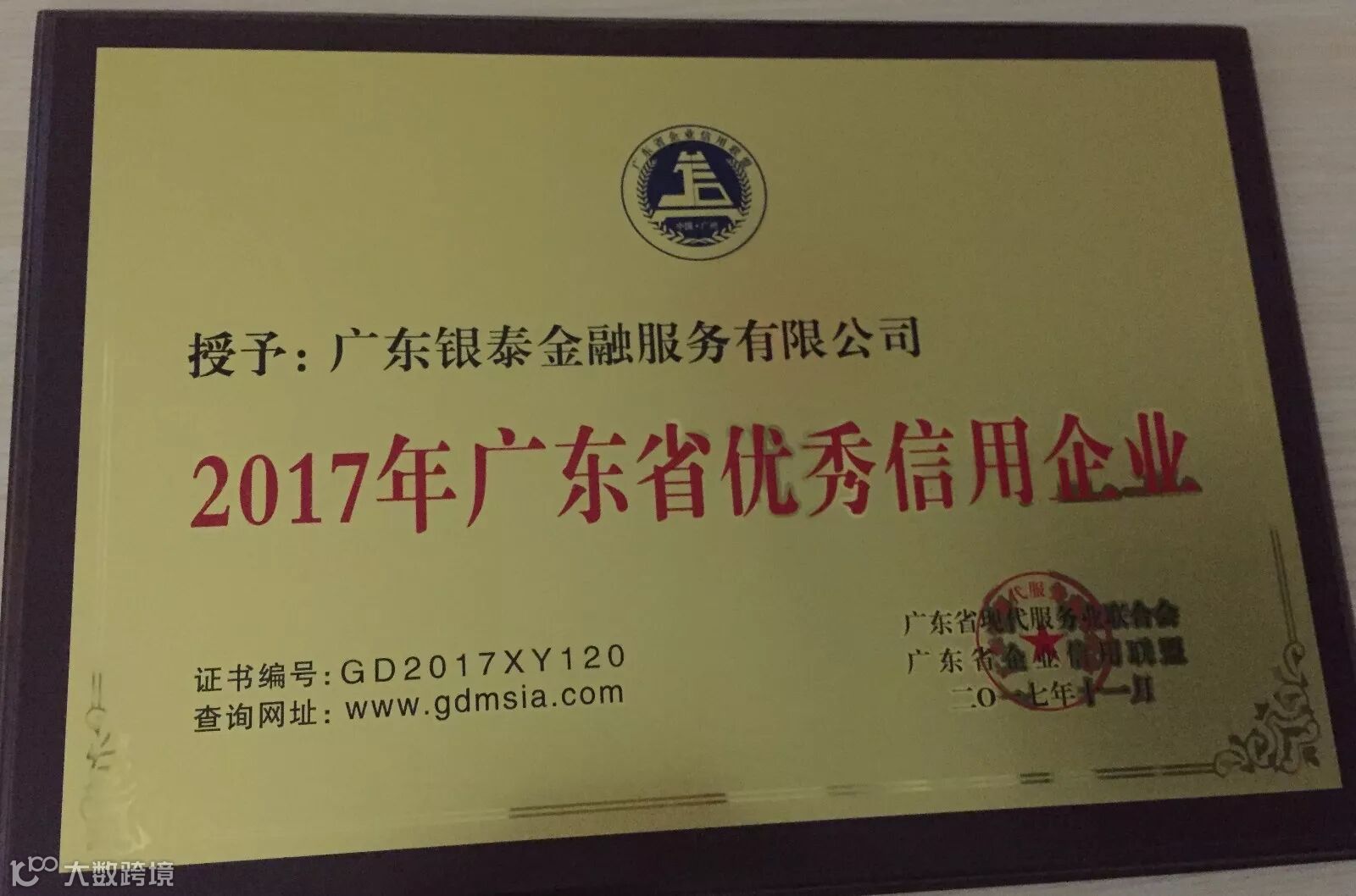 获此殊荣,是广东银泰金融服务有限公司品牌实力、企业诚信、行业累积信誉的必然成果,也是广东省相关政府部门以及社会各界对我司的服务质量、品牌建设与诚信经营等方面的充分肯定!