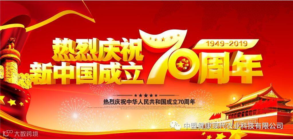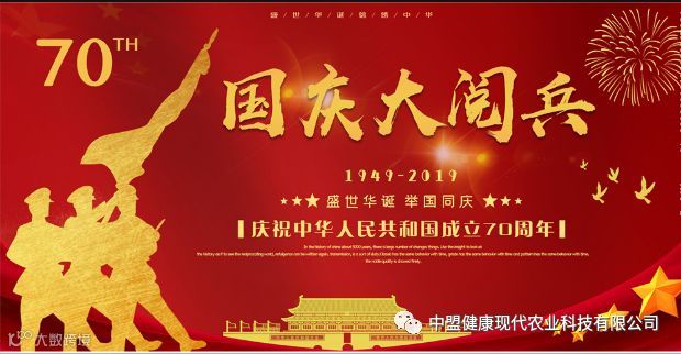 盛世华诞、举国欢庆,值伟大祖国七十周年华诞来临之际,中国农业健康产业联盟龚秀斌执行理事长携中盟健康所有成员共愿祖国:繁荣昌盛、国泰民安、锦绣山河、繁花似锦!