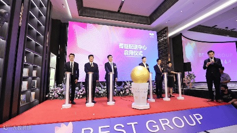随后,拔萃集团董事长杨冉先生、拔萃集团董事陈浩然先生、拔萃集团董事陈健涛先生、拔萃集团顾问吴海恒先生、拔萃集团执行总裁杨立先生、菁益配送筹建组组长陈瑜女士共同按下启动键,宣布菁益配送中心正式启用。