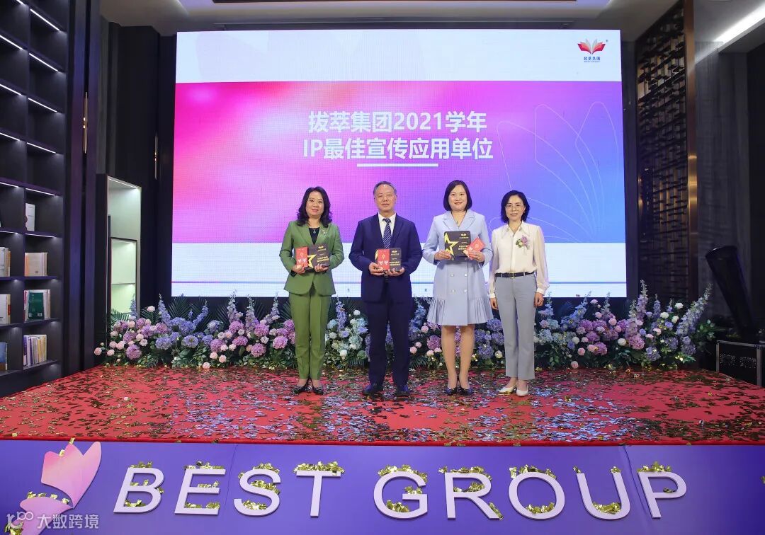 2021学年,集团高度重视IP形象拔萃哥拔萃妹的打造,这一年中,他们积极推广、应用拔萃IP,让拔萃哥拔萃妹闪耀线上线下。首届IP最佳宣传应用单位奖项由广东拔萃教育集团执行总裁梁玉仪女士颁发。