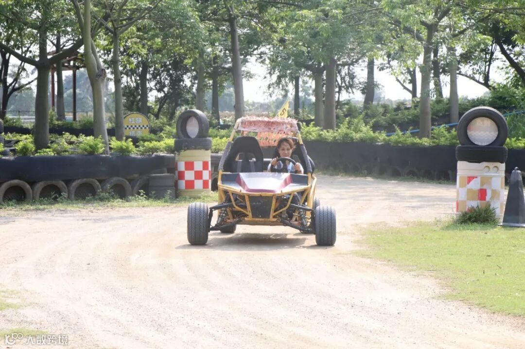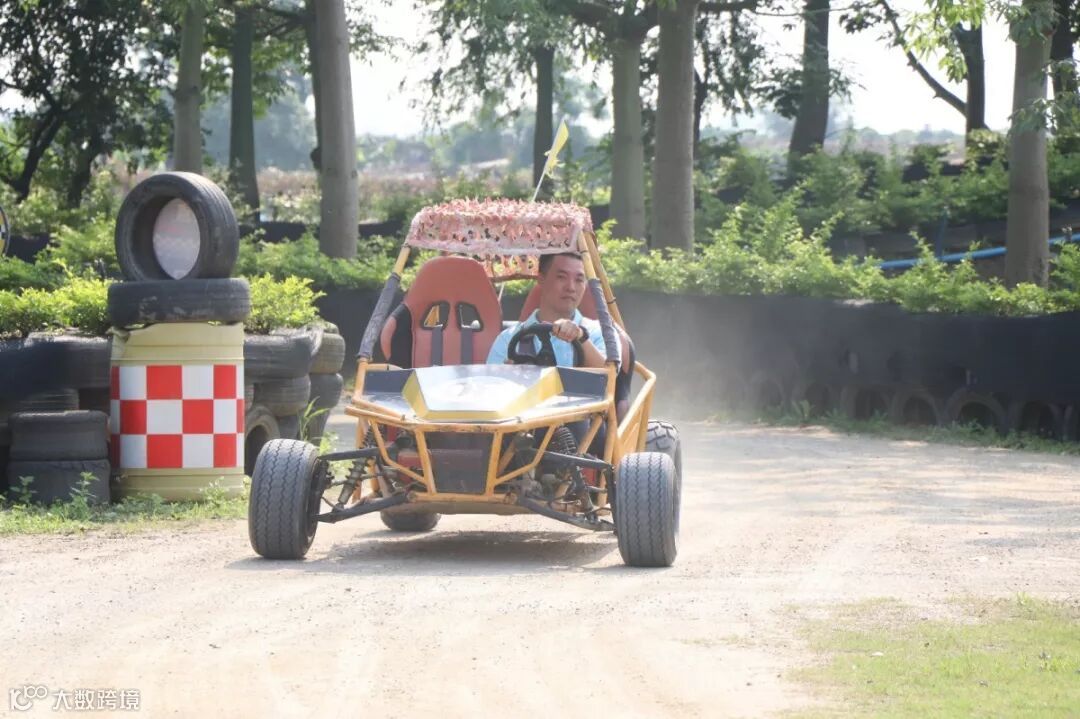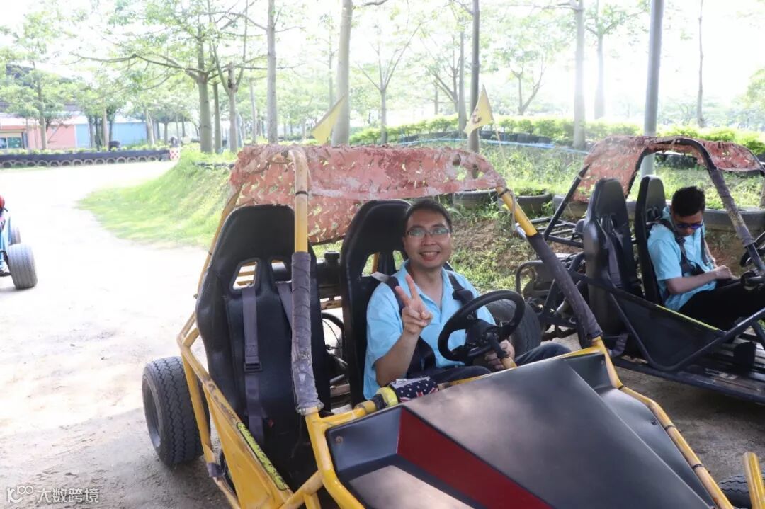 一场炫酷的赛车,也是本次拓展最带劲的项目。加速与刹车,一切都在灵活的双脚下控制着。双手紧握方向盘,拐出最炫酷的弧度。
