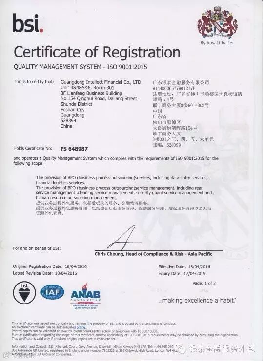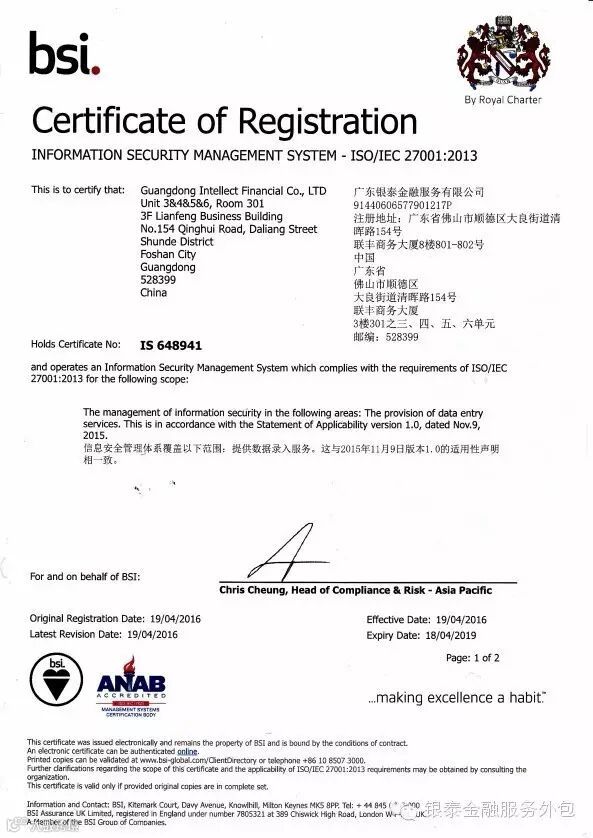 质量管理和信息安全管理是现代化企业提升管理效益的重要基础性工作,银泰公司一直致力于向客户提供高品质、高标准、高可靠性的服务外包。质量管理和信息安全管理体系的建立和实施,对保持公司竞争优势、业务持续发展起着重要作用。认证的通过和获得证书,是银泰公司一个全新起点,公司将全面落实质量管理、信息安全管理工作,不断提高项目管理水平,更有效保障客户的利益,为客户提供更优质的服务。