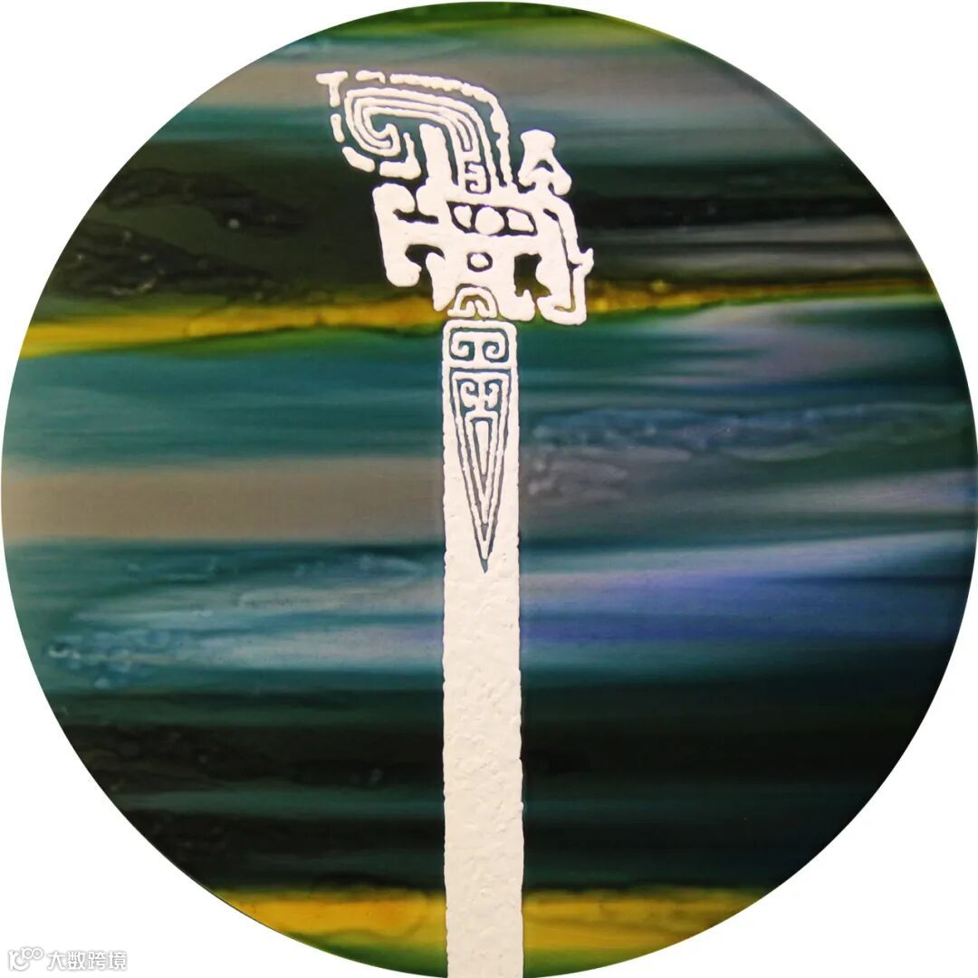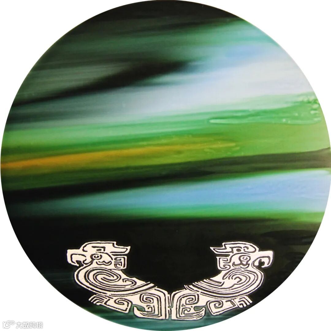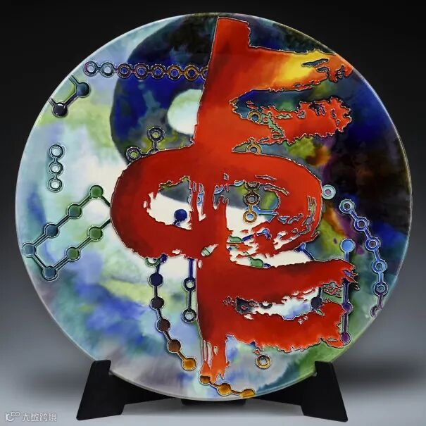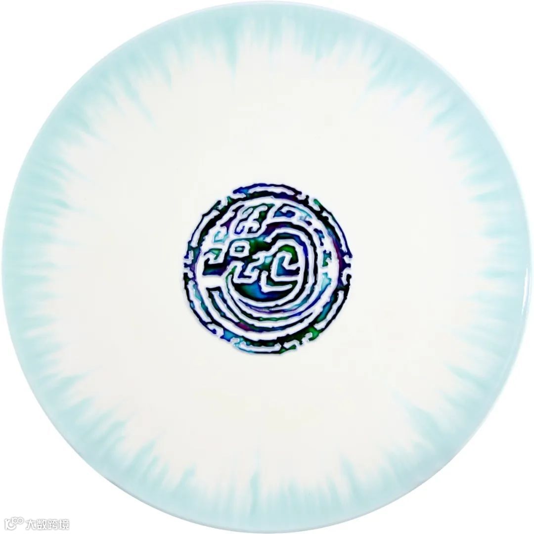 洛阳三彩作品《天地之中》,最中间中国书法的“中”字表达“天地之中”,最早的中国——洛阳,作品背景选取了代表中国河洛文化的河图、洛书元素。三彩工笔立线与自然流动、晕染、融容的写意艺术与中国书法相结合,将中国书法与洛阳三彩陶瓷艺术的完美融合;蓝色色调,展现出浩渺宇宙、蔚蓝天空之感。