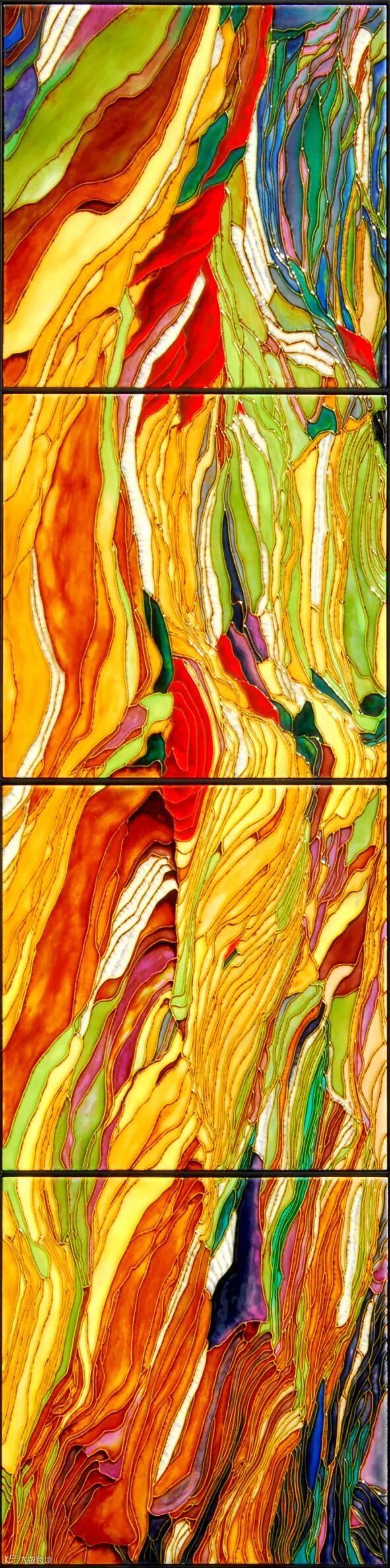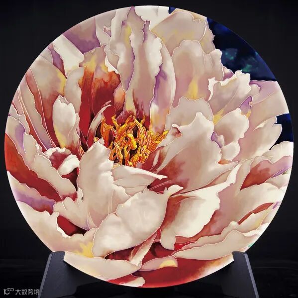 用三彩精美绝伦的窑变效果,来表现一幅很有现代感的三彩艺陶瓷作品,整幅画娇艳欲滴、无限绽放。