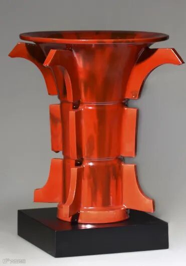 《中国尊》,原型取自 1963 年出土的一件国之重器--何尊。尊内底铸有铭文 12行、122 字铭文其中“宅兹中国”将“中国”在历史上定格,指的正是天下之中-一洛阳。此作品造型外轮廓基本遵照原型而制,同时又在原型上有所改动,略去餮纹,但特选洛阳地区天然地表原矿釉,充分利用色彩熔融渗透,展现出自然的现代立体感,及现代装饰审美,又突出其质感,纯手工拉胚而制,色泽温润质朴,大气浑厚,又点题本作品原旨一天下之中洛阳。