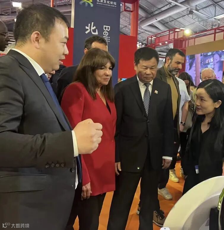 巴黎市长伊达尔戈(左二)欣赏三彩作品