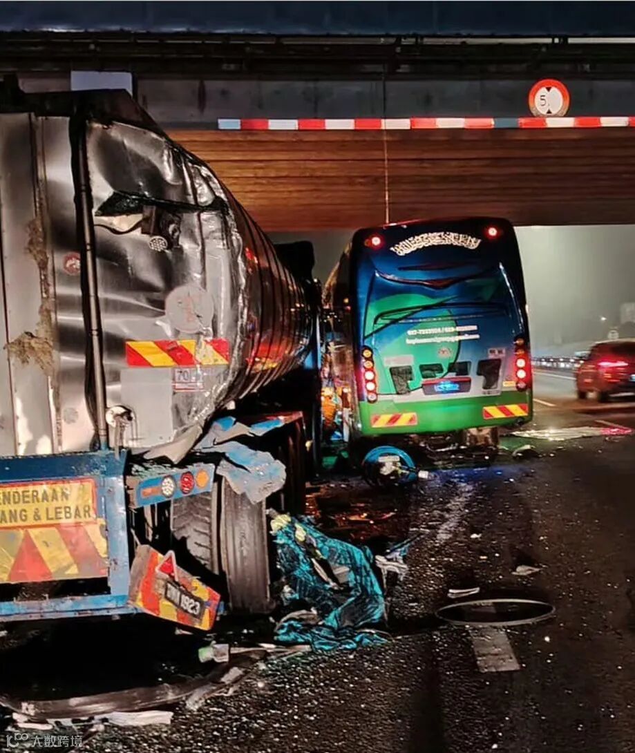 事件:7月3日凌晨,在马来西亚柔佛州亚依淡镇一辆载有46人的旅游巴士与一辆拖车和一辆油罐车发生相撞。