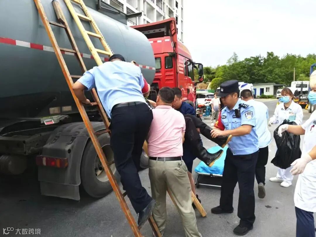 事件:6月27日15时27分,安徽黄山市公安局高新分局梅林派出所接到报警,一名油罐车司机不小心跌入油罐内,情况十分紧急。