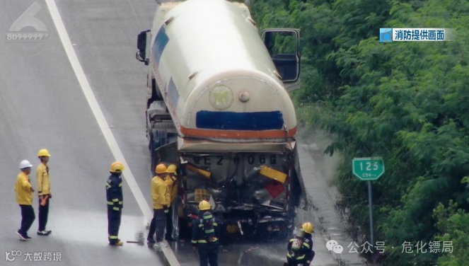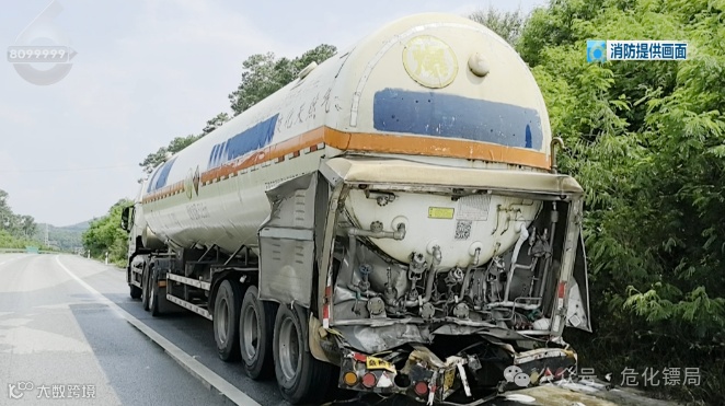 8月17日早晨9时许,云南天猴高速文山北收费站往马关方向(马塘镇夹马石村附近),一辆载有21.2吨天然气的罐车被一箱体货车追尾后泄漏,事故发生地毗邻村庄,且货车驾驶员被困,如不及时处置,后果不堪设想。