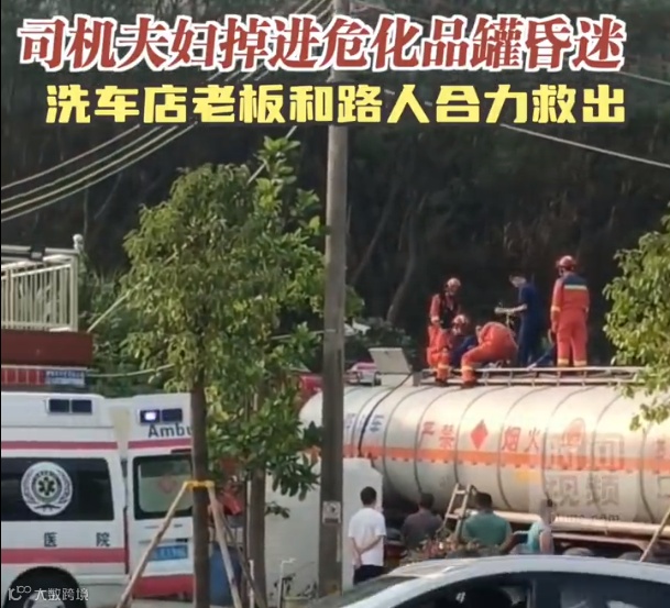 广东惠州危化品司机夫妇掉进罐内昏迷