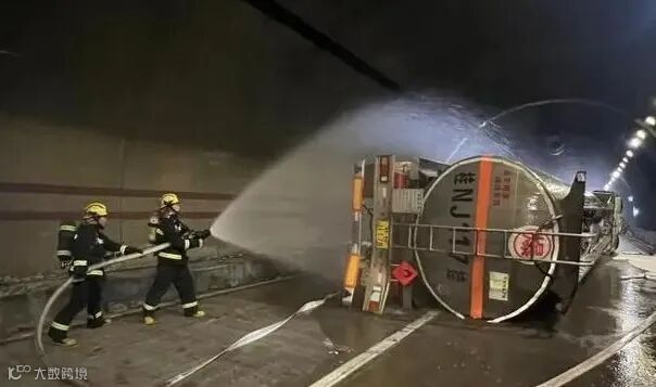 事件:4月18日9时许,广西梧州支队指挥中心接到报警:梧州长洲区马梧高速飞田隧道路段发生一起槽罐车侧翻的交通事故,无人员被困。