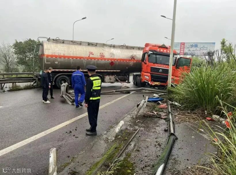 重庆一危化品运输车行驶途中撞向护栏