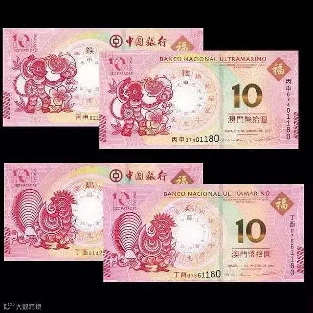 3、中国的生肖文化源远流长,自古以来,以生肖为题材的艺术品和收藏品始终为广大收藏者所喜爱,她既是我国长久不衰的古典文学,更是我国经典的艺术题材。据发钞银行消息称,澳门生肖钞只发行一轮便不再发行,所以澳门生肖纪念钞系列只有一次的收藏机会。因为大西洋银行本属于葡萄牙在澳门的殖民商业银行,至澳门回归中国后,签订了最终协议,至2023年后就不容许再发行任何流通货币,而生肖纪念钞已然会成为绝版产物!其将来的价值潜力不可估量。