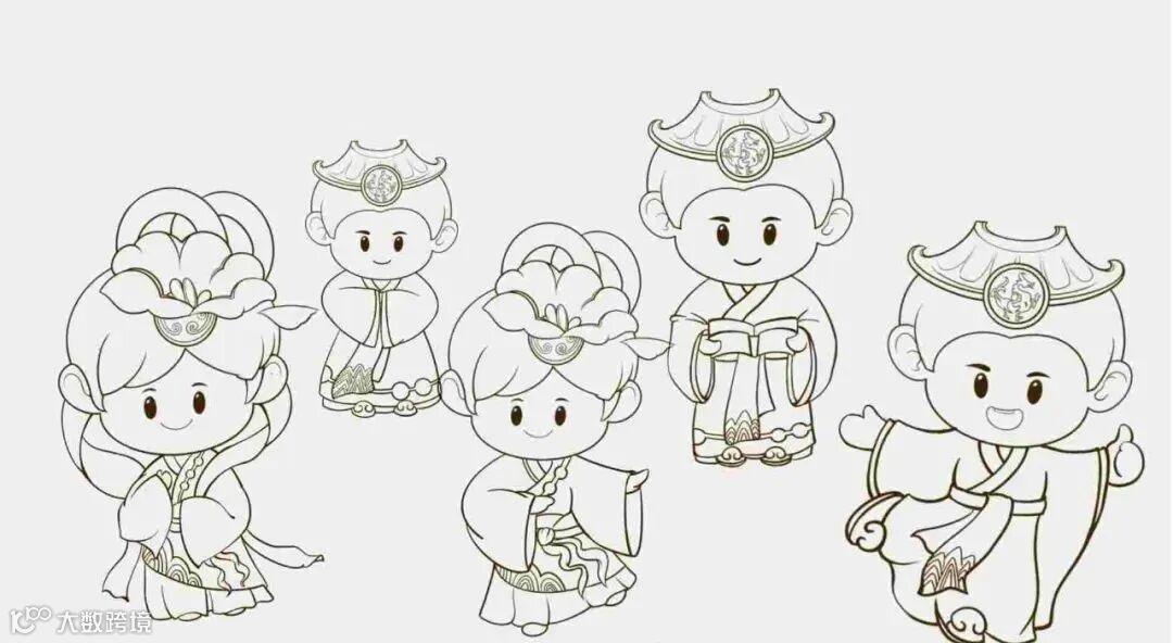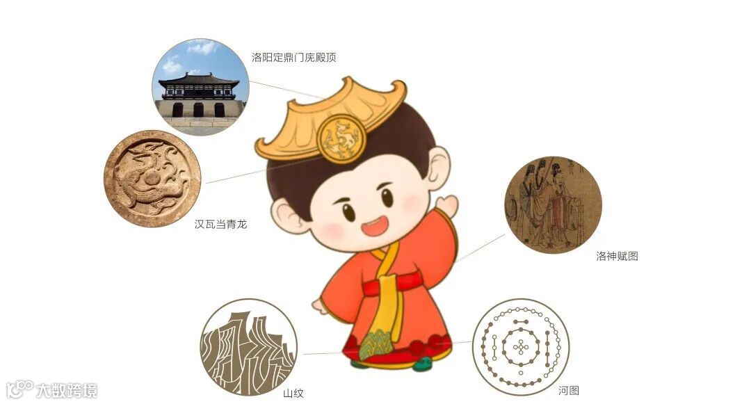 “和和”与“乐乐”身着《洛神赋图》上魏晋风格的服饰,象征客家从洛阳第一次南迁的“衣冠南渡”。服饰上的河图洛书、山纹水纹等设计元素也都在围绕洛阳“客家祖根地”展开,表达山水相依,守望相护的情感。